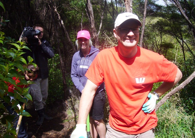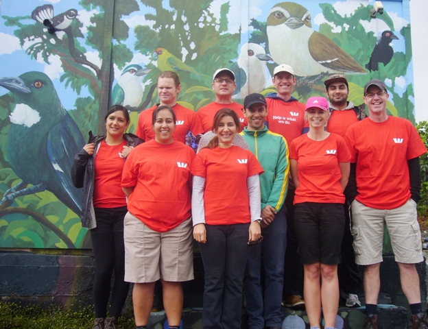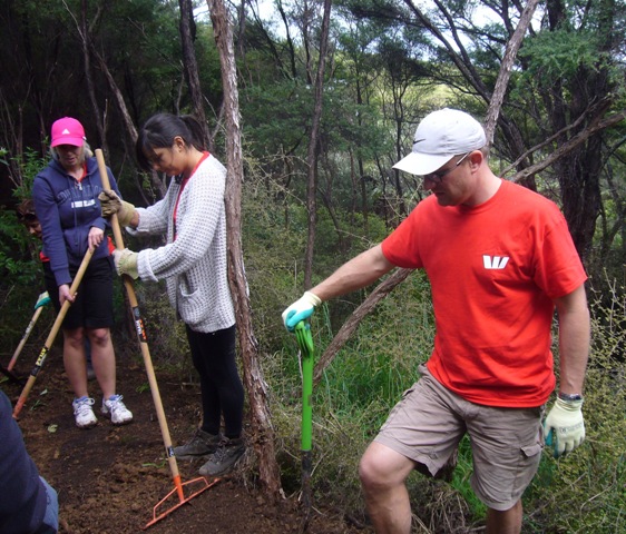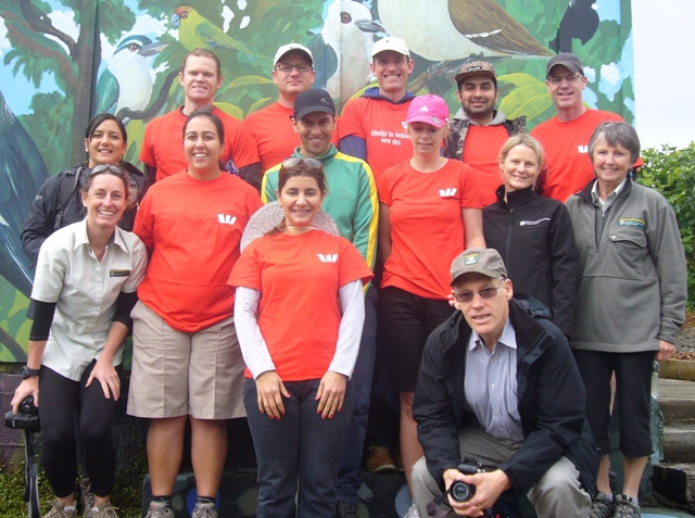 Westpac is one of New Zealand’s largest banks and has been doing business in the country since 1861. The bank has a strong commitment to sustainability and community support and today ten professionals from their Business Analysis Group in Auckland visited CUE Haven to help us with some walking track work. The team arrived just after nine and included Anita, Devan, Indra, Kerrie, Maurice, Nooshka, Pranic, René, Rory, and Sarah.