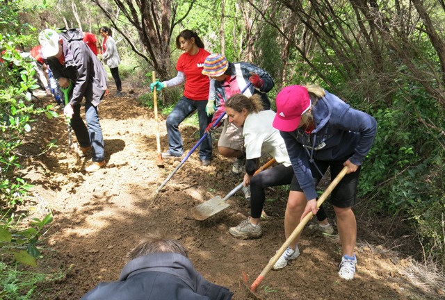 The Westpac team has made an excellent start on the new track. In just a couple of hours the team was able to form 70 metres of new track! Additional teams of volunteers this summer will continue where the Westpac team left off.
