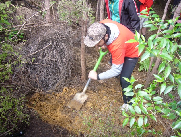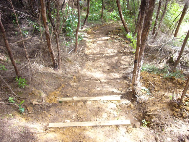 A few metres from the entrance, the ground begins to slope down and the team cut steps to make it easier for visitors to walk down the slope. The steps were secured with boards which were pegged and nailed into place.