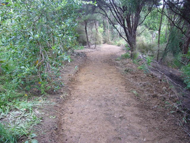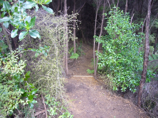 The big job for the day was to work on a new track that we are building this summer. This track starts near the western end of the existing stream gully track but follows along the opposite side of the stream and it will give visitors an opportunity to enjoy some additional mature bush on the property. The new track will also enable visitors to walk from the top of the property back to the cottage almost entirely on walking tracks rather than on the access roads.