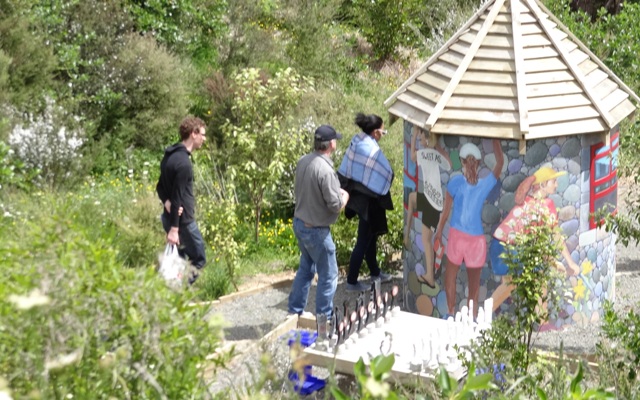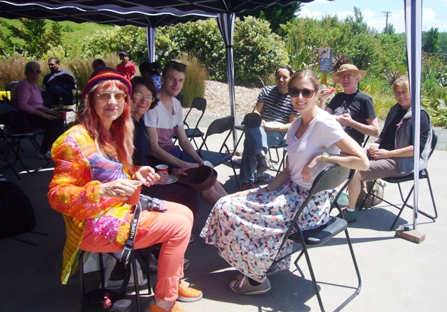 Also as part of the Open Day, a few students from the Unitec department of Performing and Screen Arts were on site with lecturer, Mark Ingram, to film and interview as part of their project to make a short documentary on the CUE Haven project. They interviewed some of the volunteers and also interviewed Paige and Yan, Unitec graphic design students who developed the beautiful signs which are now installed at CUE Haven.