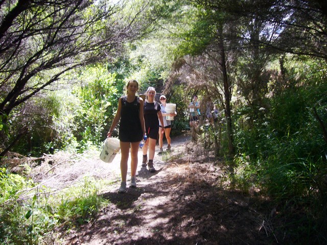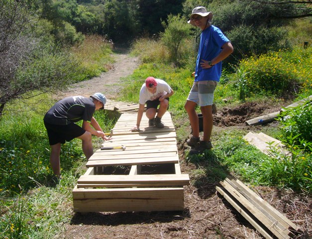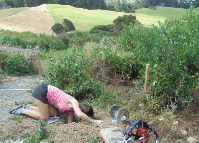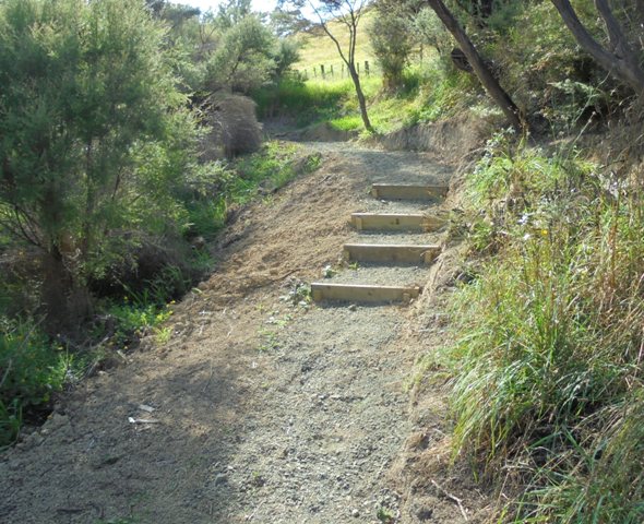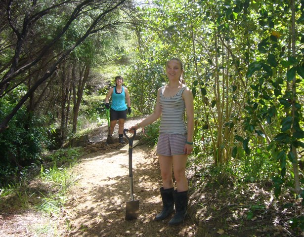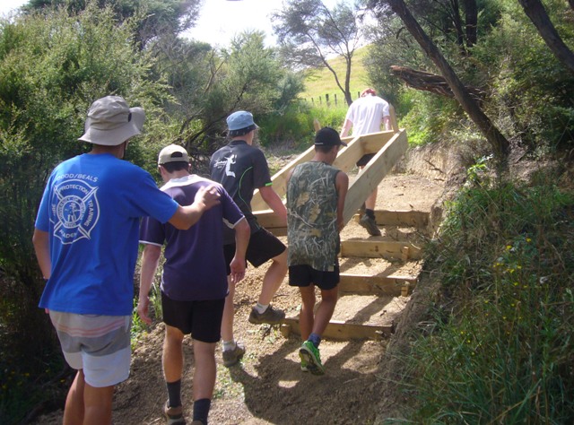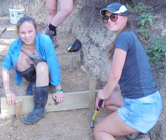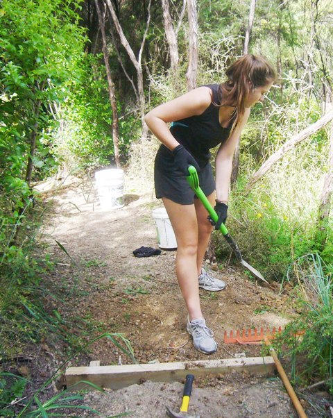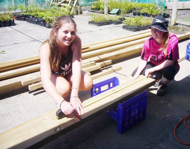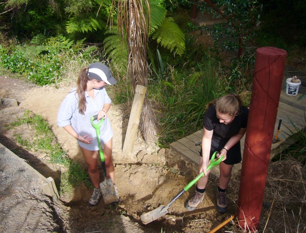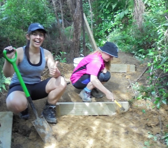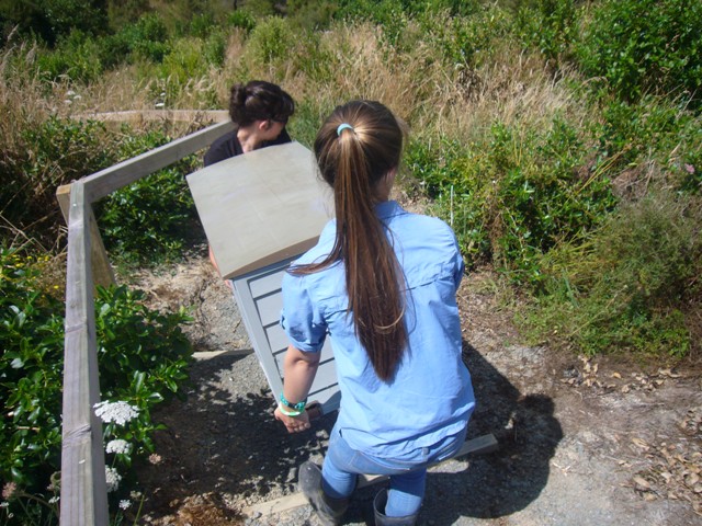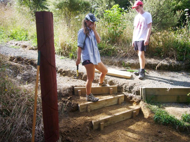 Bridget worked with Emily, Sarah and Sophie to install the steps along the new track. The project involved digging out the steps, making sure they were even and level, and lots of nailing to secure the posts in place.