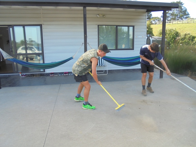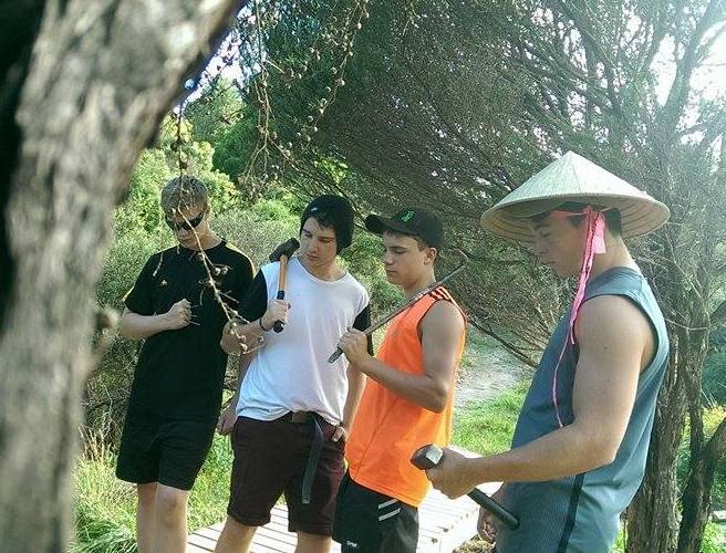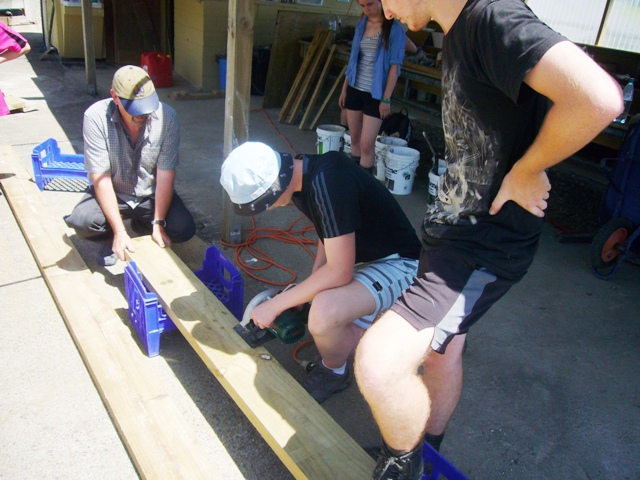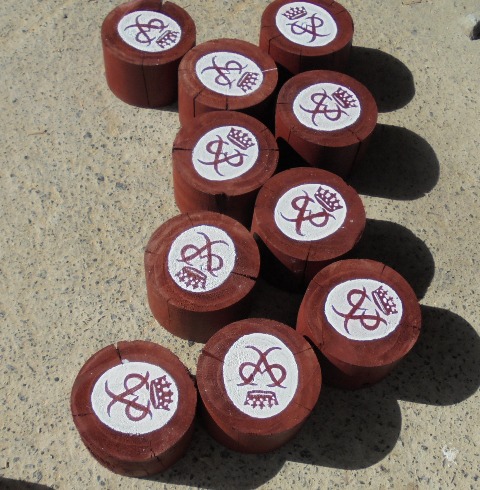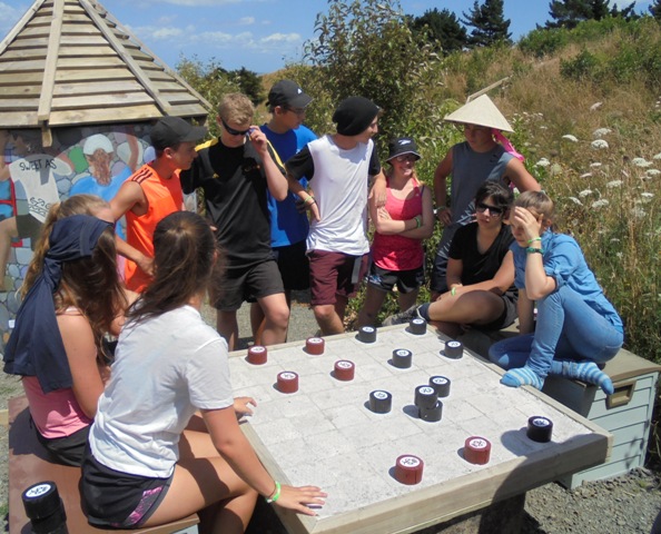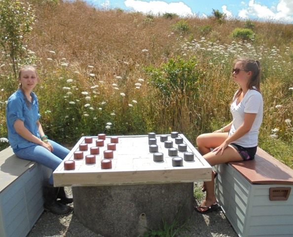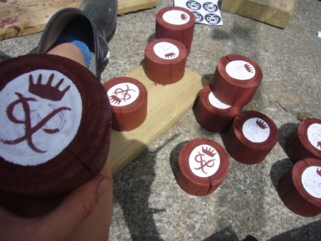 The team also tackled another very creative task. A previous team had made a chess board and chess pieces for the DoEHA Grove. The chessboard is in place on an old water trough behind the hut (old water tank) in the Grove. This team decided to make checkers to go along with the chessmen.