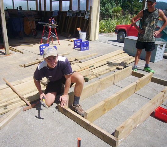 Once the wood was cut, the frameworks for the boardwalk sections were assembled.