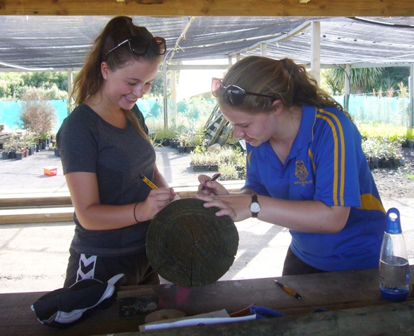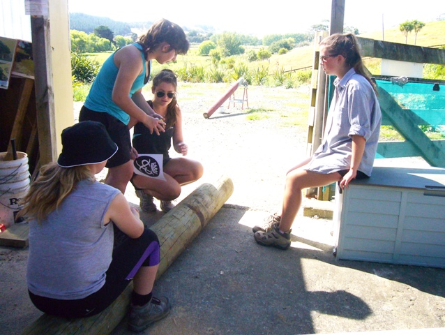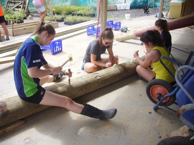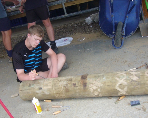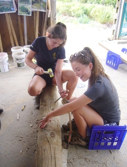 The boys were still in the field finishing off the boardwalk so the girls broke into two teams and started work on the posts. The first task was to agree on a design for how to carve and decorate the pole.