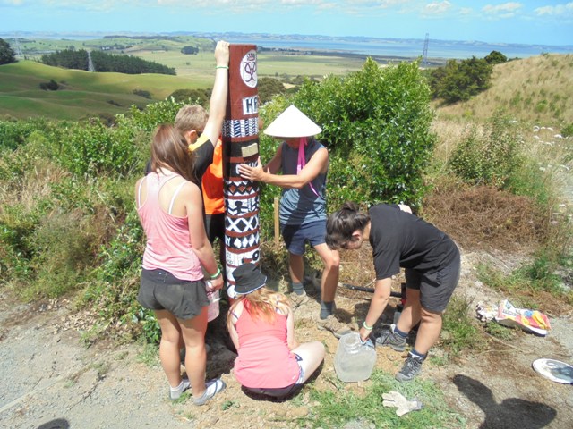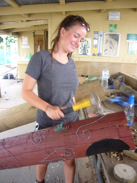 In addition to the track work, the other big task that the team tackled was carving totem poles to mark the entrances to the walking tracks they have built. Previous teams have installed six totem poles at various points around the property and this team did an additional two.