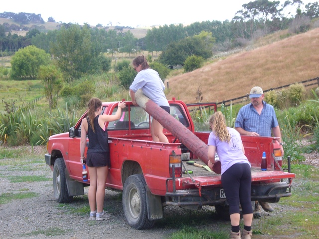 Once the posts were carved, the challenging part was to get them out to the field and install them. The posts were loaded onto the ute and carried to the nearest convenient spot.