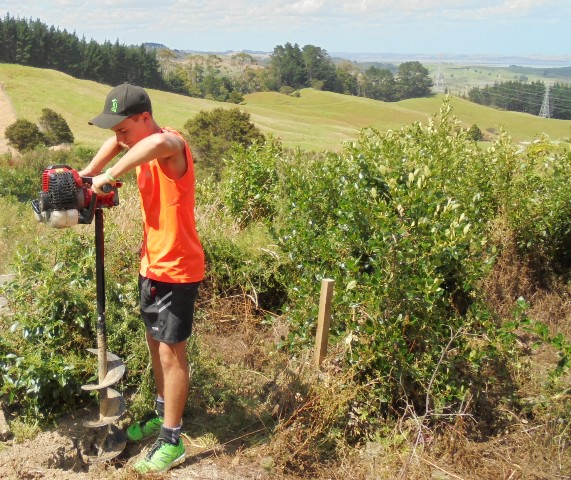 The posts were then carried down to the installation site and very deep holes were dug. The team took turns digging with the post hole digger.