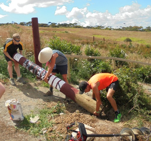 There were two main tasks planned for the week. The first was to finish off work a walking track that had been started by other volunteer groups and the other was to do some totem poles to mark the entrances to the DoEHA Grove walking tracks. Some other creative work and several smaller maintenance tasks such as pruning vegetation on the roads and tracks were also planned.