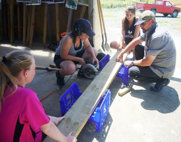 While being supervised by an experienced adult, the participants learned to use hand and drop saws to cut the timber.