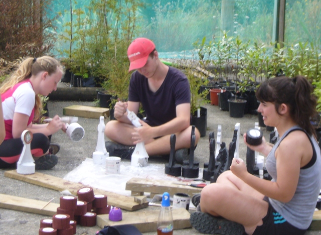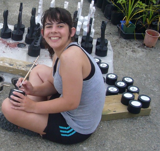 And Emily and Kalym took the opportunity to spruce up the chessmen by painting the concrete bases.