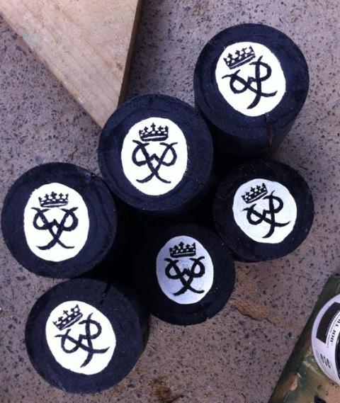 Then Sarah used her artistic skill to painstakingly paint the DoEHA logo on each piece.