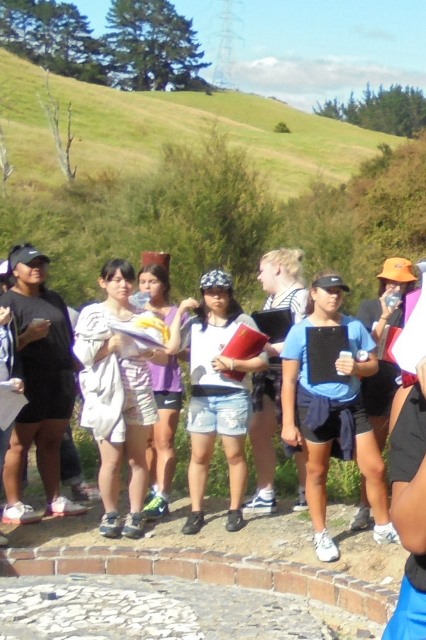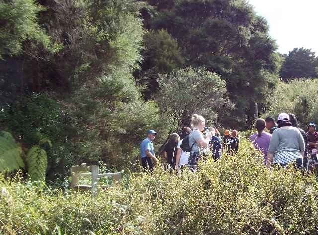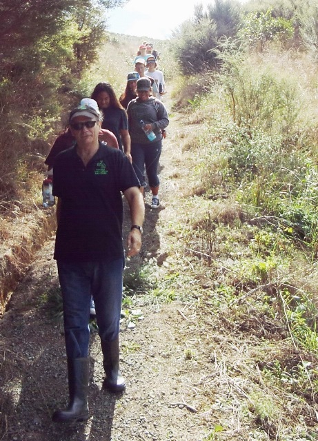 It was a long hot hike up to the top of the property but once they got there the students had a chance to view the geography of the Araparera Valley and some of the Kaipara Harbour catchment to get a better idea of how streams feed the harbour and the different kinds of land the streams flow through.