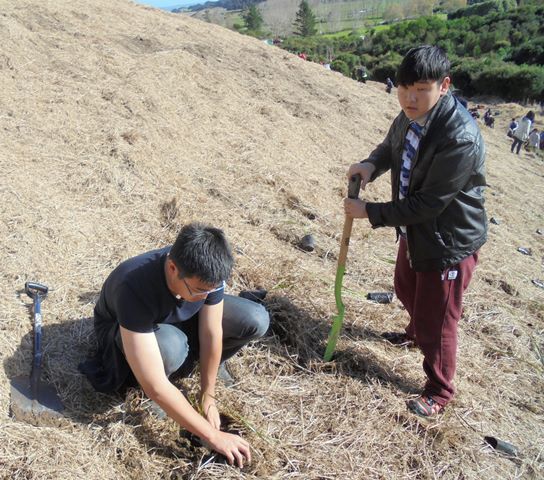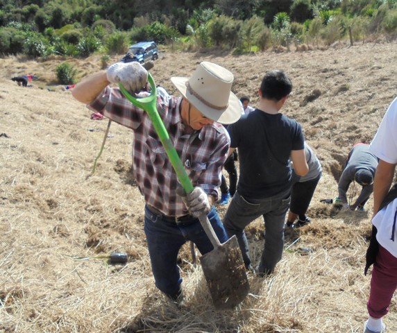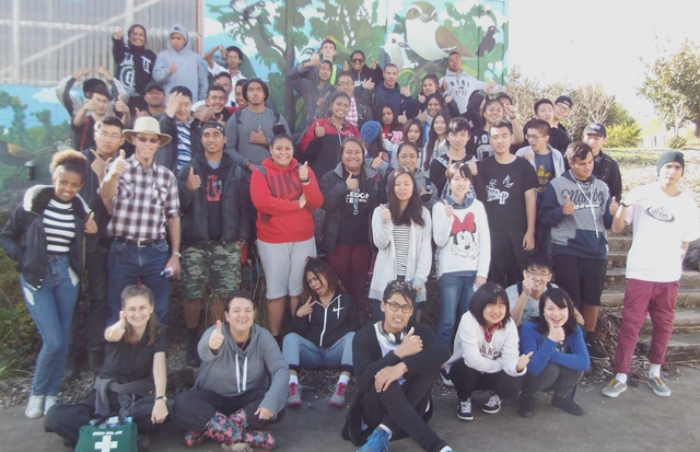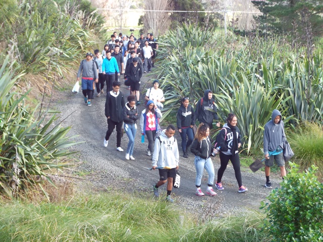 Year 12 and 13 horticulture students from Avondale College in Auckland have been planting at CUE Haven since 2009 as part of the Auckland Council’s Trees for Survival (TFS) programme. Today a great group of 49 students and staff members Hannah, Helen and John joined us for a day of planting and exploring.