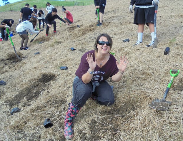 And many thanks to horticulture teachers Hannah and John for their efforts throughout the year in getting the plants ready and organising the planting day and also for helping out today. And our thanks too to physics teacher Helen for coming out to assist for the day.