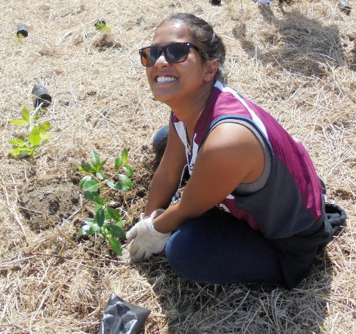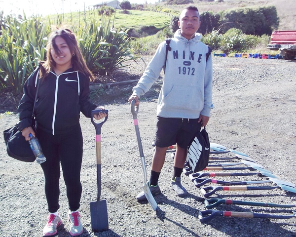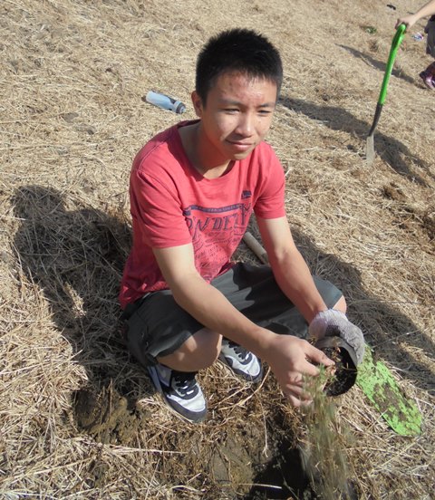 The students went to work on the hilly site which was made even more challenging with lots of dead weed grass.