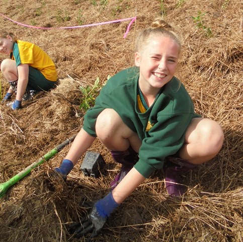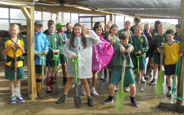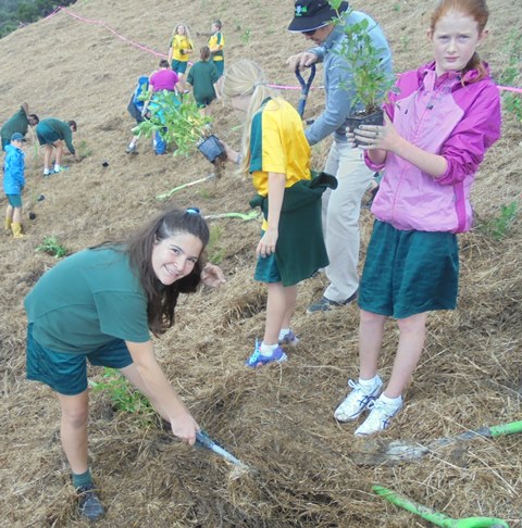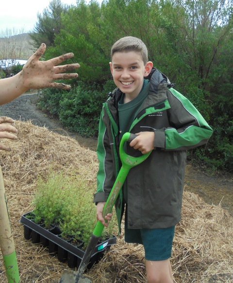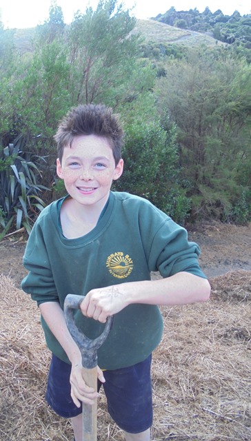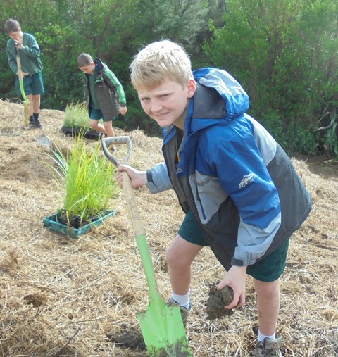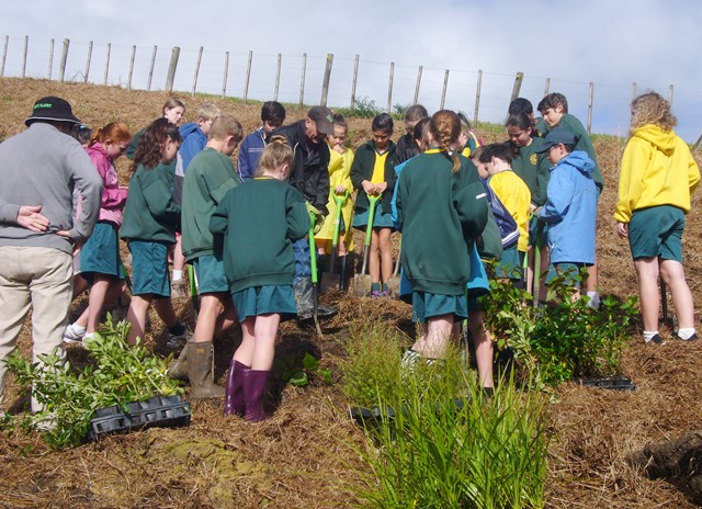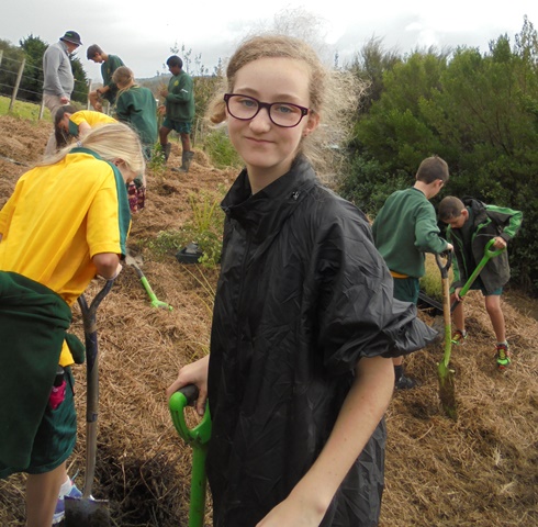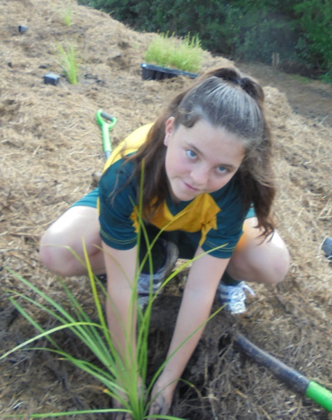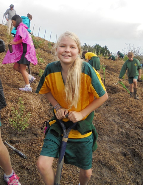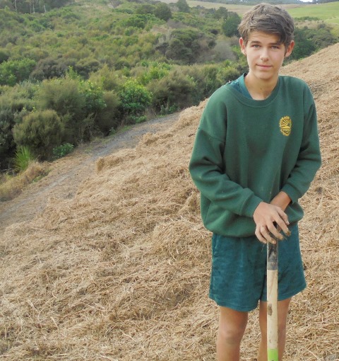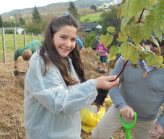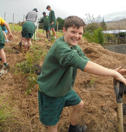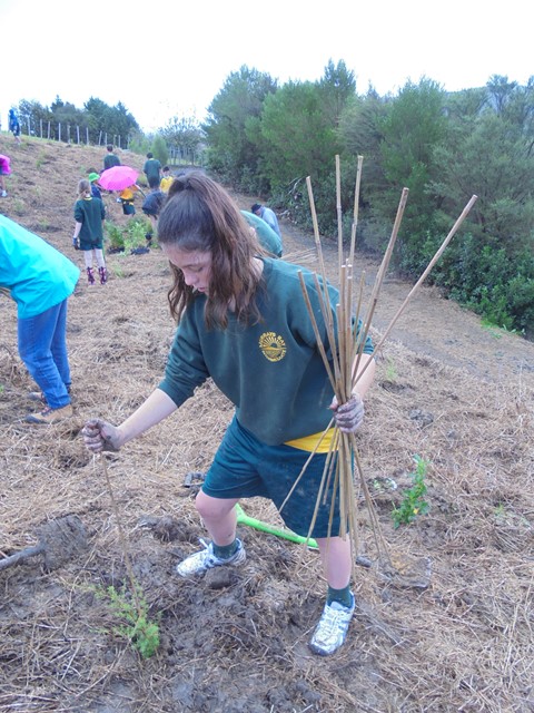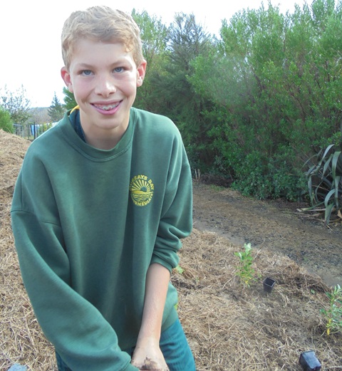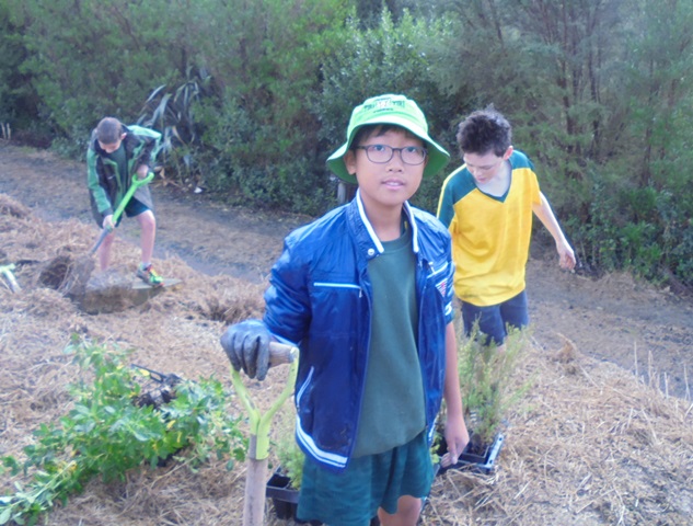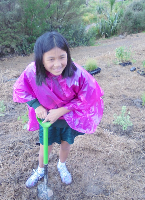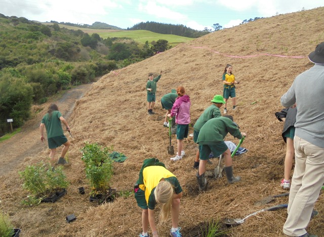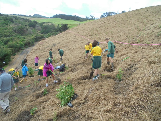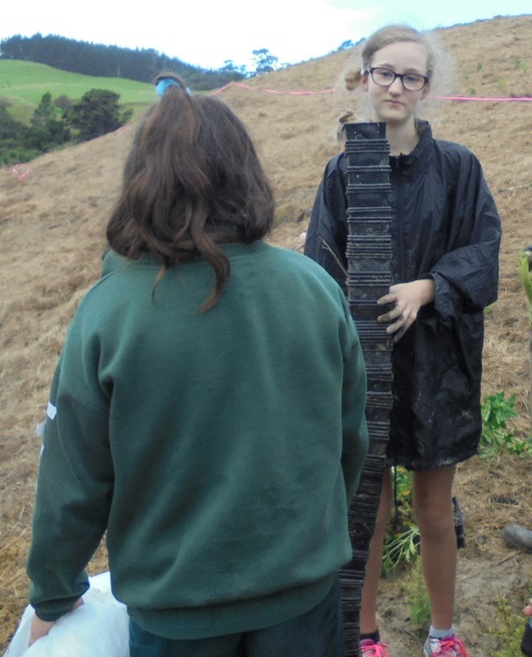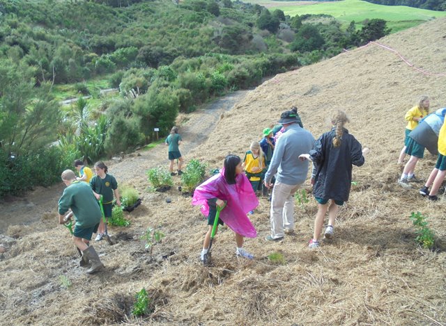 Today David Walker, science and sustainability teacher at Murrays Bay Intermediate School in Auckland, brought out a group of twenty five Year Seven and Eight students for a day of planting and exploring. Also accompanying the group today was parent Gretel Roberts. This is the fifth time students from Murrays Bay have been out to CUE Haven and we really enjoy their visits.