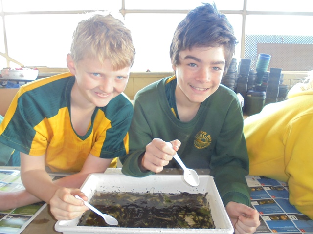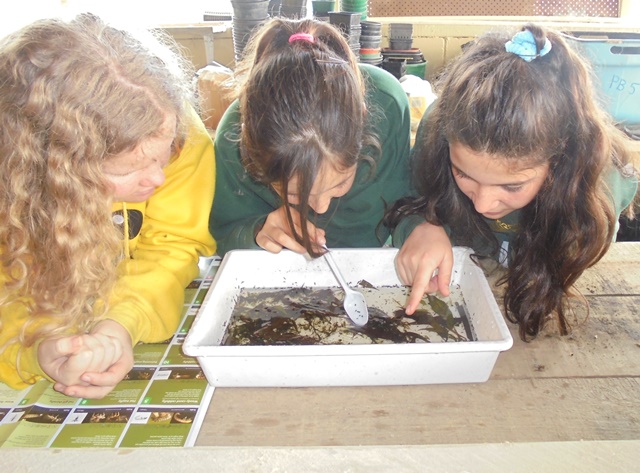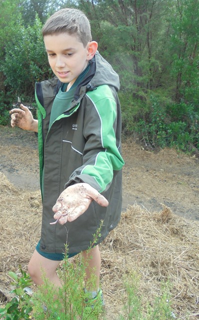 The students found lots of worms and snails and skinks in the rich soil.