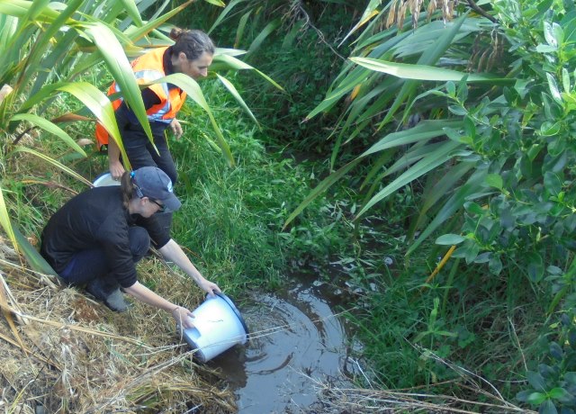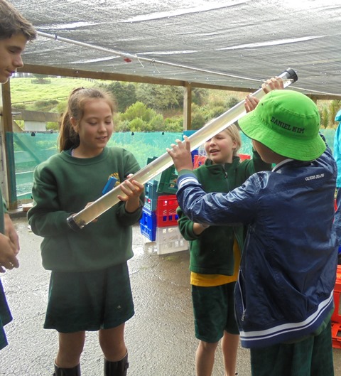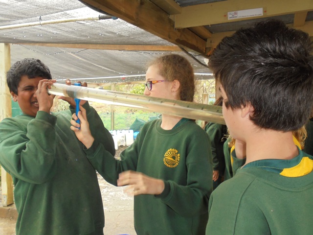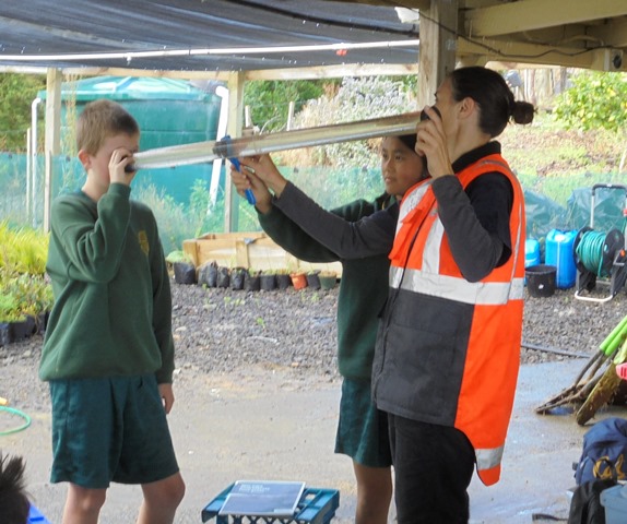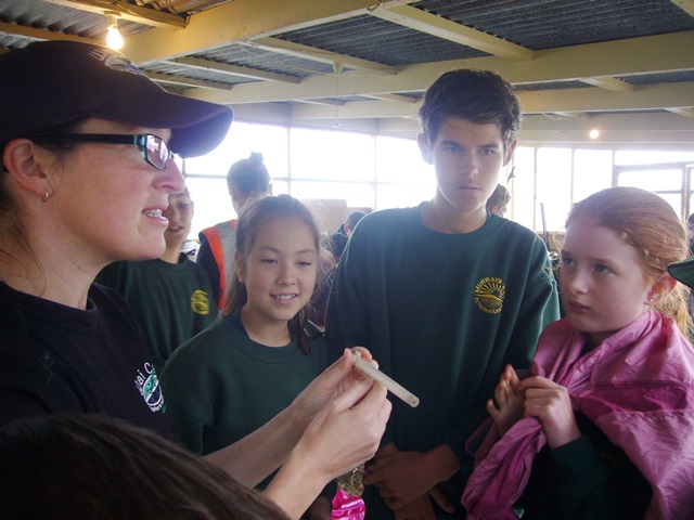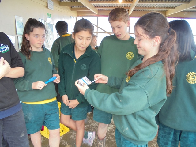 After lunch, Rachel Griffiths and Shelly Hackett of the Auckland Council WaiCare education programme gave the students a presentation on water quality issues and a demonstration on water testing. Rachel and Shelley had previously gone out and collected water samples from two stream areas on the property.