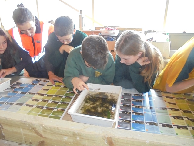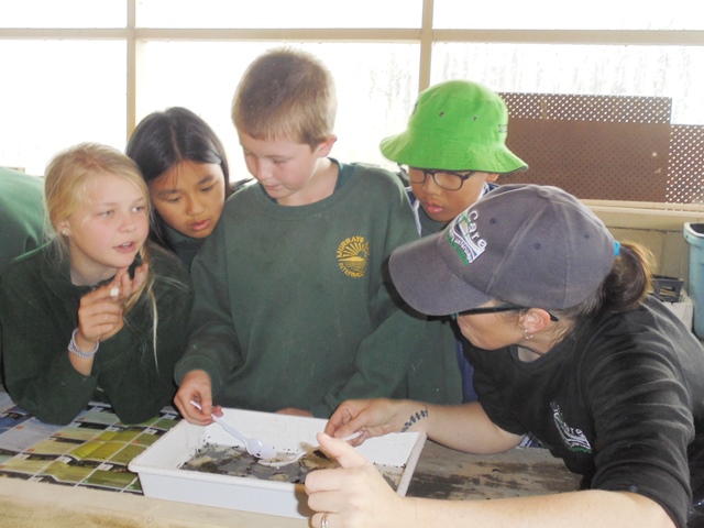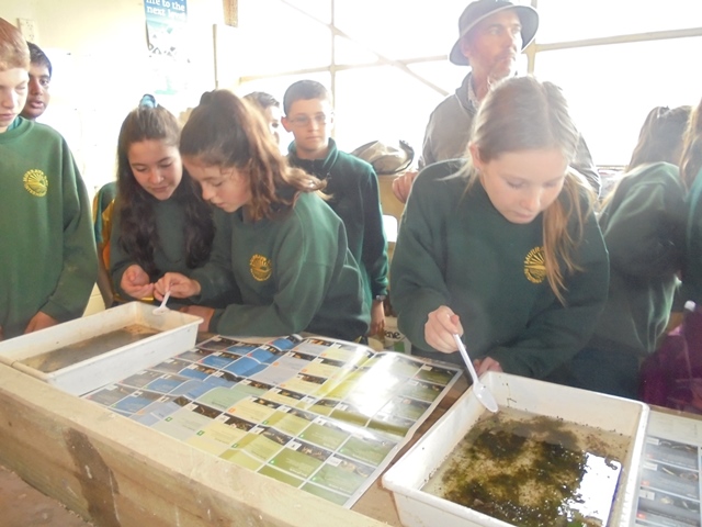 Rachel and Shelly had also collected some pond vegetation in the hope of finding some creatures, known as macroinvertebrates. The type and variety of animals found are a further indication of the health of the streams. They explained how to identify the creatures and gave the students a chance to see how many they could find.