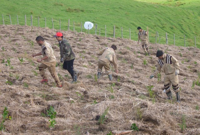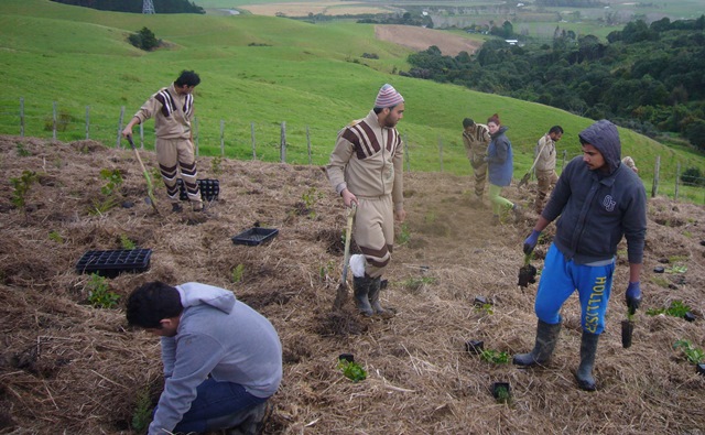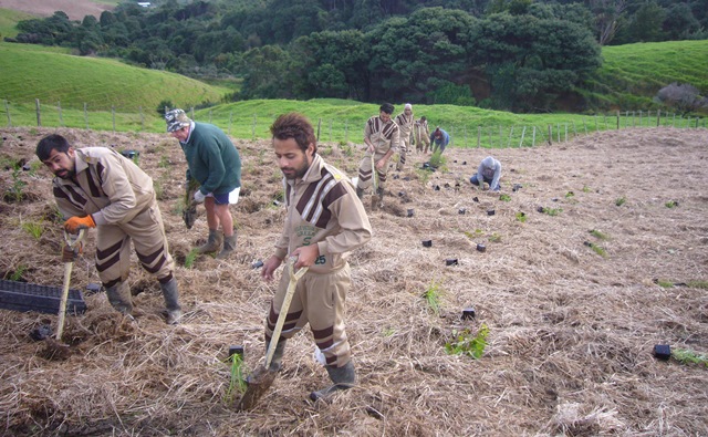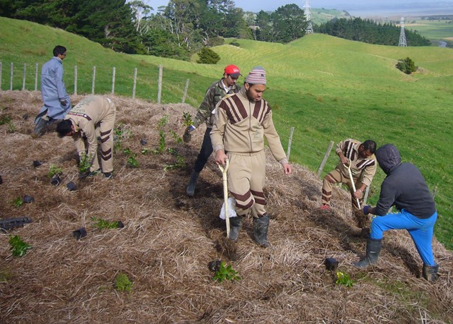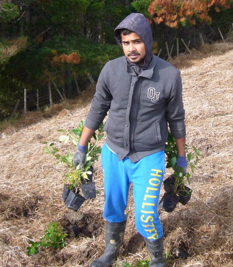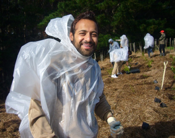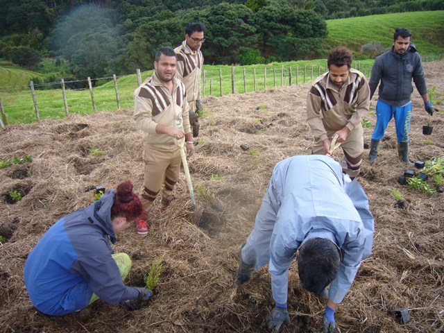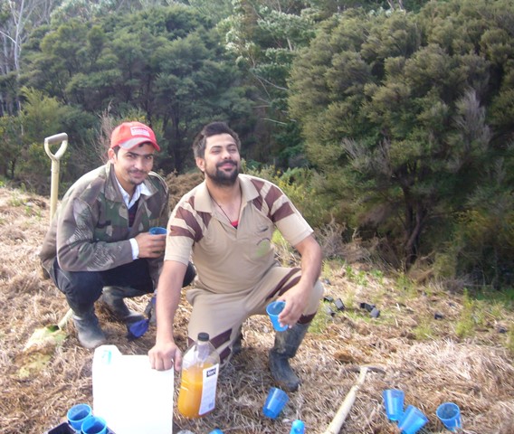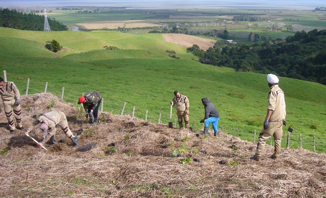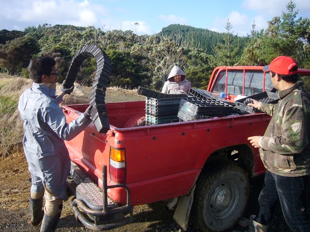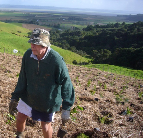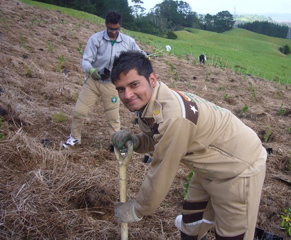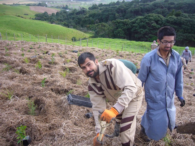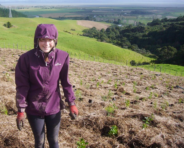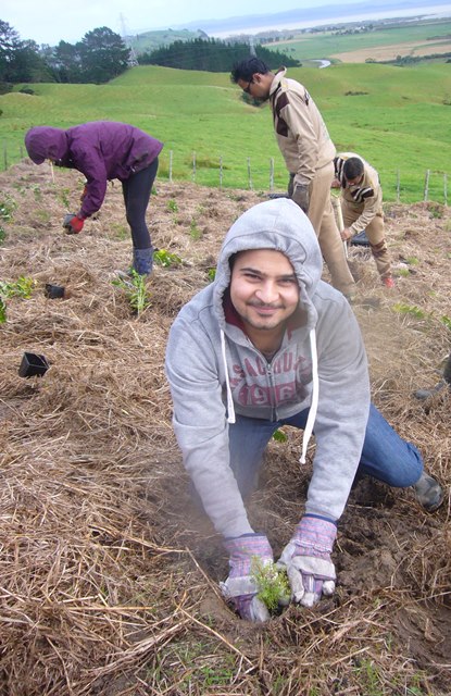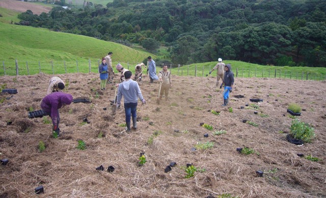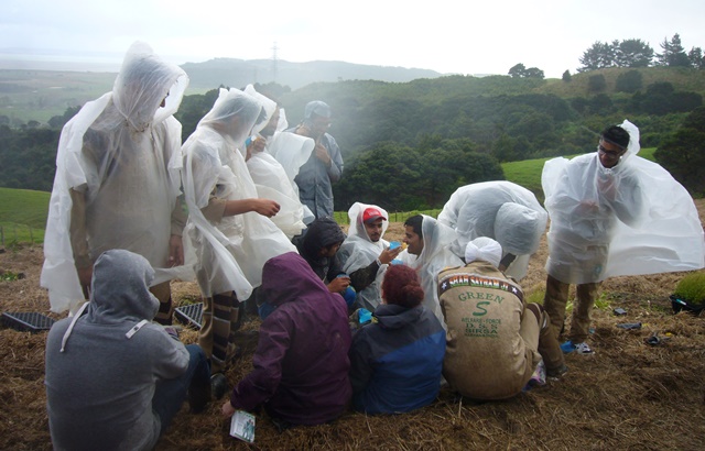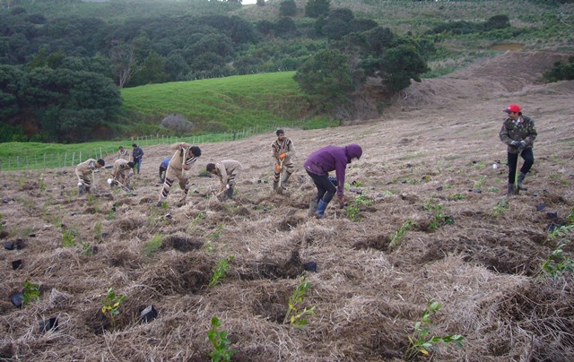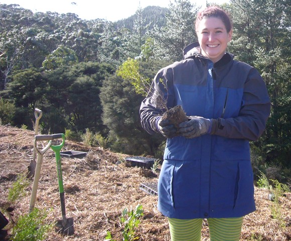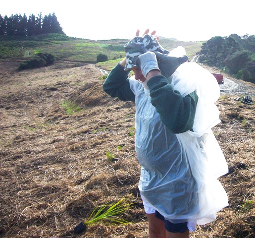 At the planting site, the team had great views but were exposed to the wind and rain squalls. At least we had plenty of advance warning as we could see the squalls coming in over the harbour.