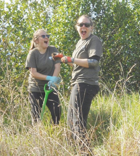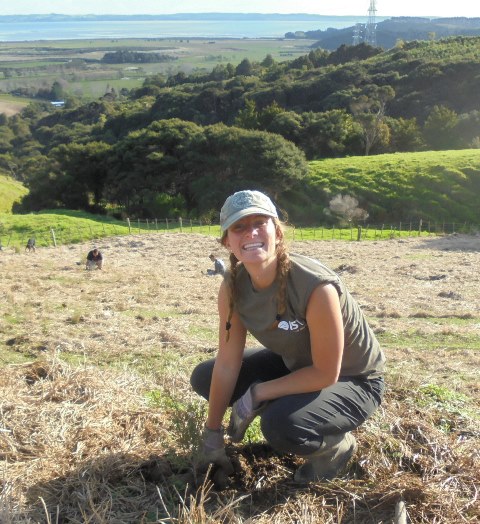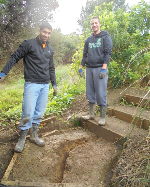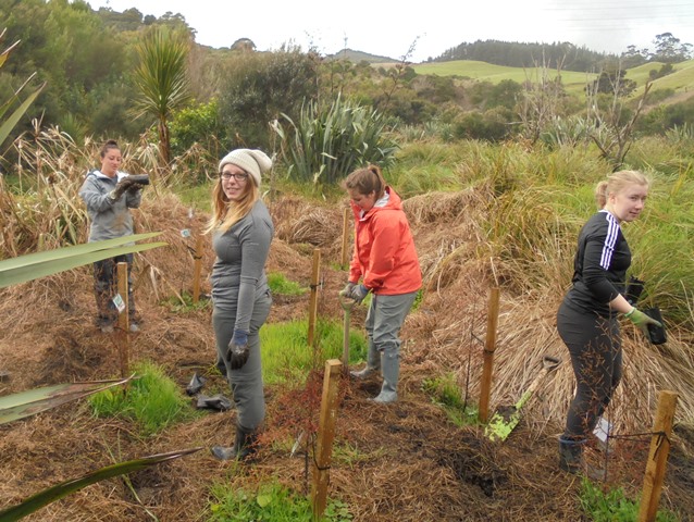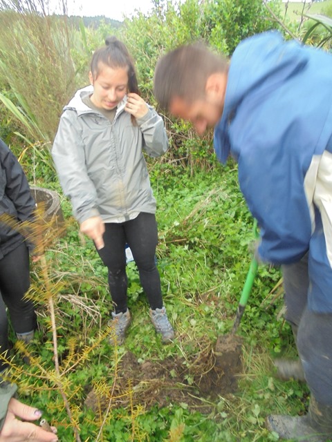 The group had the weekend off to recover from their long flights and on Sunday went exploring at nearby Muriwai beach and relaxing in the Parakai Springs hotpools. On Monday morning we went to work. We started planting in an area that had been sparsely planted a few years ago and needed to be filled in.