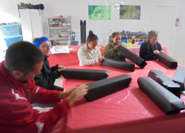 Throughout the week we took time to explain the goals and objectives of our restoration project to the group and to involve them in as many aspects of the project as possible. We explained the problems that introduced pest mammals create and described our pest control procedures. The ISV students helped by installing some new tracking tunnels and laying out tracking cards in existing tunnels. We started out by assembling the new tunnels.