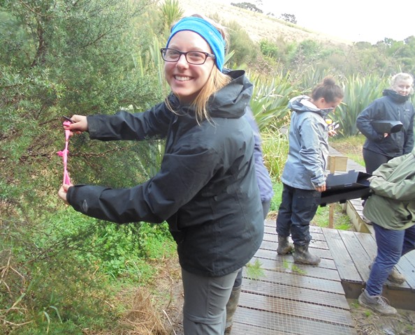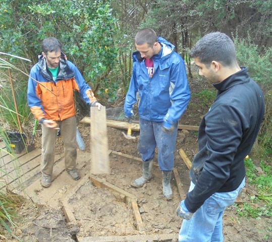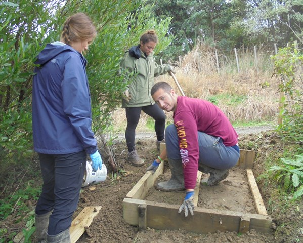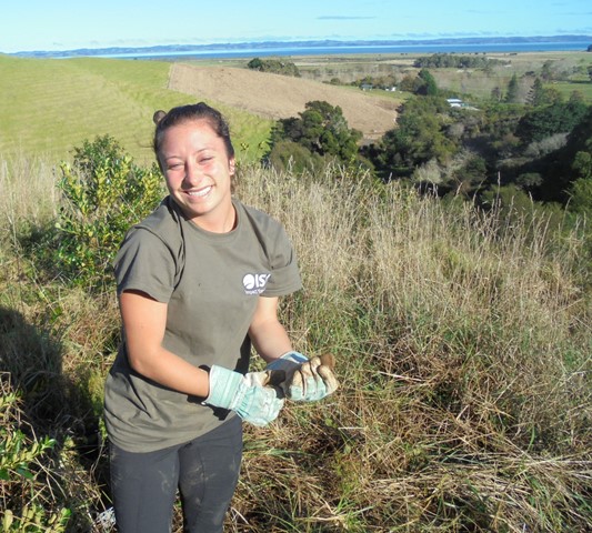 International Student Volunteers is a US based organisation which gives young people the opportunity to combine volunteering with adventure travel. ISV operates tours in six countries, including New Zealand. The focus is on conservation and learning about environmental sustainability and over 310 universities around the world recognize ISV projects for academic credit. This week a group of eight students from the US and Canada joined us for a soggy but fun and productive week. The team arrived on Saturday morning, coming directly from the airport after arriving from Los Angeles, and included Amanda, Andrea, Austin, Lauren, Melissa K., Melissa S., Nicole and Vincent. Jonathan Hattrell of ISV New Zealand was the team leader.