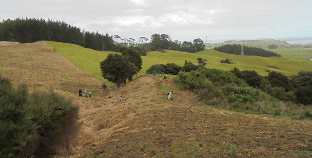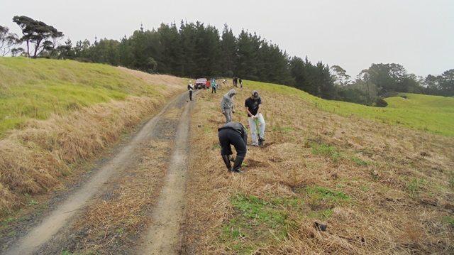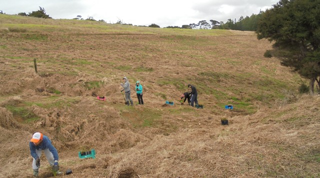 The trees they have planted are the fast growing pioneer native New Zealand trees (Cabbage trees, flax, kanuka, karamu, kohuhu, lacebark, mahoe, manuka, wineberry), that will establish the canopy which will provide shelter for a variety of plant and birdlife to flourish.