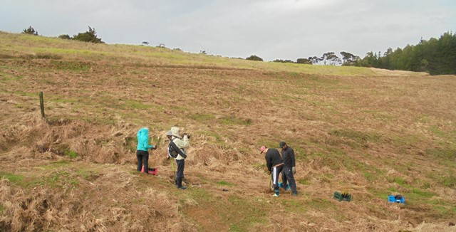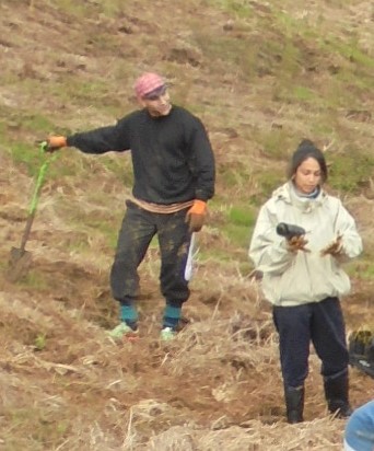 The plan for the day was to continue planting at the top of the property, an area combining wetlands and open sloping ground. We drove the group up to the top and went to work.