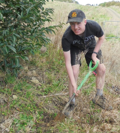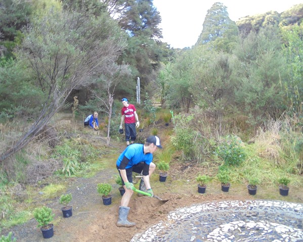 We got acquainted over morning tea and gave the group an overview of the CUE Haven project, the history of the DoEHA Grove and a description of the work planned for the week. It was great to learn that Tobias had been part of the very first tree planting at CUE Haven in 2008 when he came out for the Trees For Survival planting with the St Kentigern School.