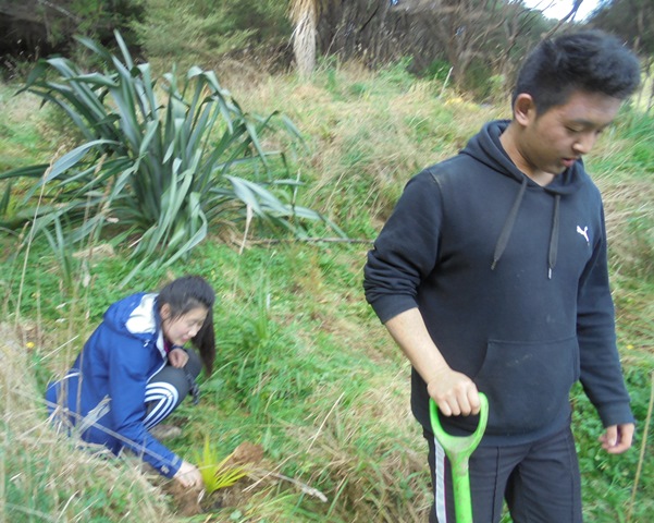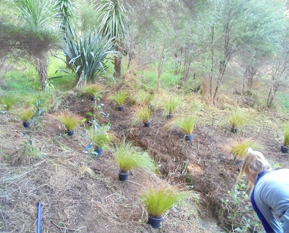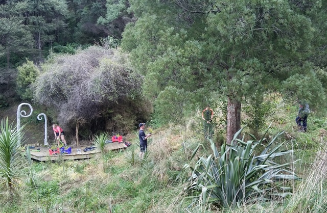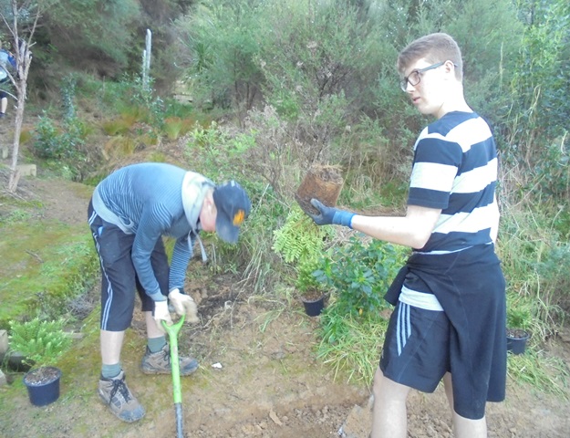 The team planted pioneer trees like manuka, kanuka, karamu in several areas around the property. And they also did infill planting of canopy trees like rimu, totara, nikau in and around the DoEHA Grove.