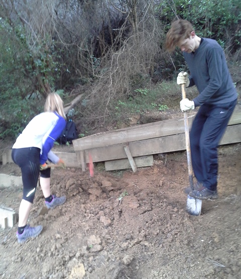 The last task was to bring up gravel—one bucketful at a time—to finish off the track.