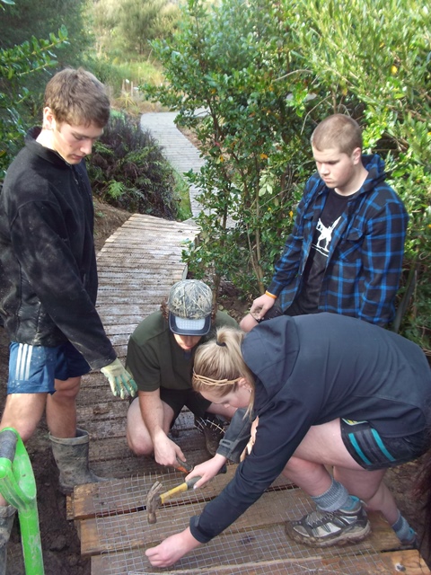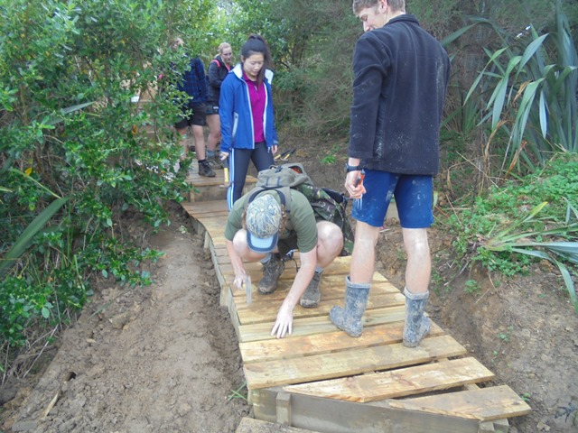 There was still a short section of entrance to the wetlands boardwalk that wasn’t complete and part of the team went to work to finish it off.  It was challenging work because they had to join up two completed sections of boardwalk and it required a lot of measuring, digging and cutting.