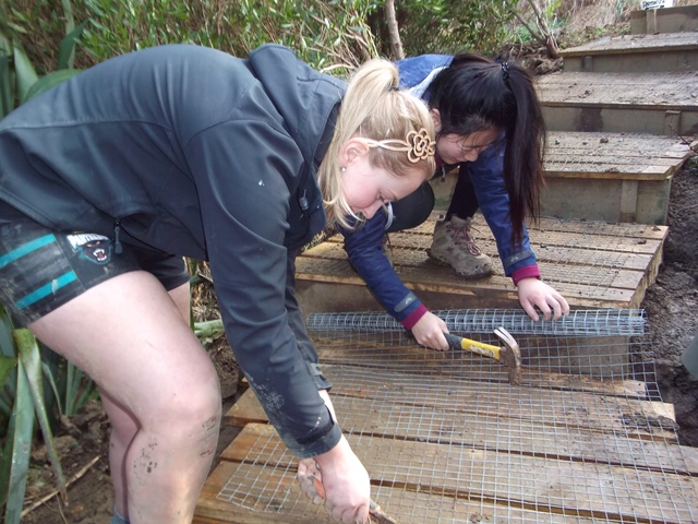 The final boardwalk step was to nail down wire mesh to prevent the surface from being slippery when wet or muddy.
