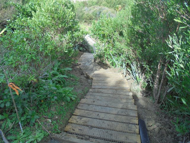 The team had to build some steps and some of the boardwalk sections were curved. This meant that the top planks had to be cut to shape. We trained and supervised the team members so they could use power tools to help with the cutting.