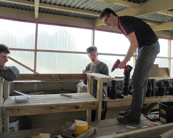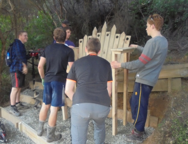 While part of the team worked on the boardwalk, others tackled the project to build a bench to place on the walking track in the Grove. They took time to design how they wanted the bench to look and went to work cutting out timber and assembling the bench.