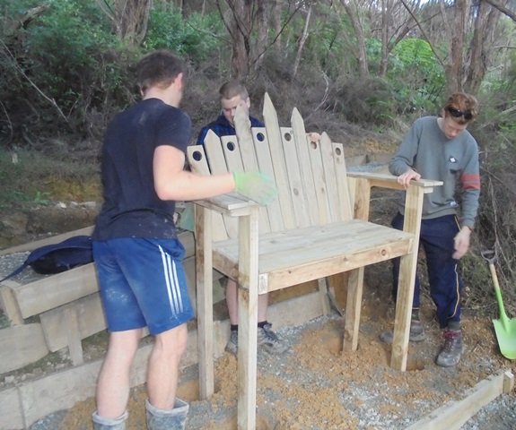 While part of the team worked on the boardwalk, others tackled the project to build a bench to place on the walking track in the Grove.  They took time to design how they wanted the bench to look and went to work cutting out timber and assembling the bench.