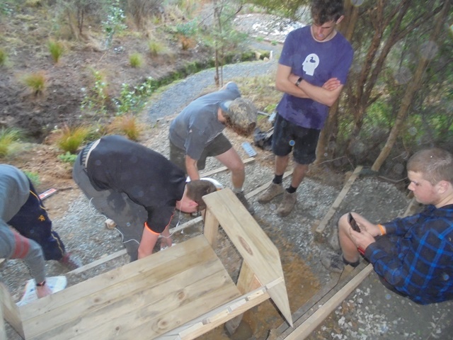 There was still a short section of entrance to the wetlands boardwalk that wasn’t complete and part of the team went to work to finish it off. It was challenging work because they had to join up two completed sections of boardwalk and it required a lot of measuring, digging and cutting.