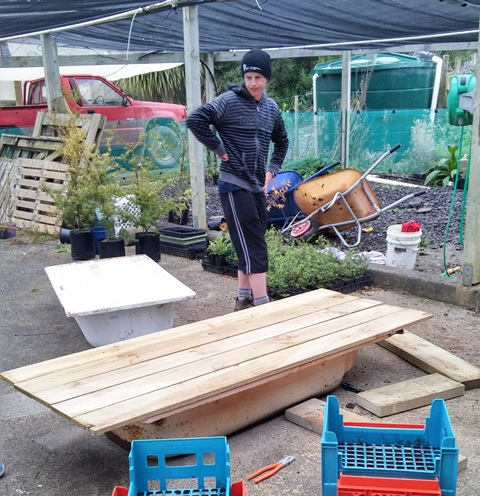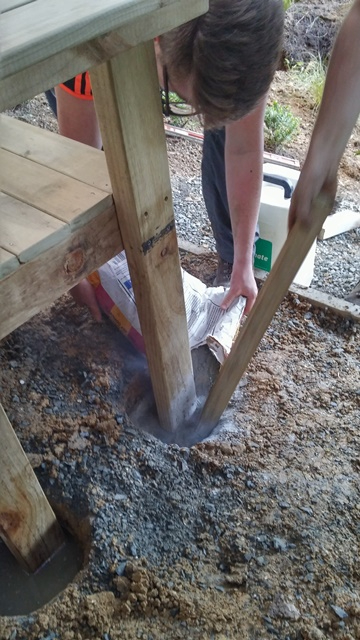 We only had enough timber for one table top, so the other table top and the benches will be built by the next DoEHA team in October and they will also install them in the Grove.