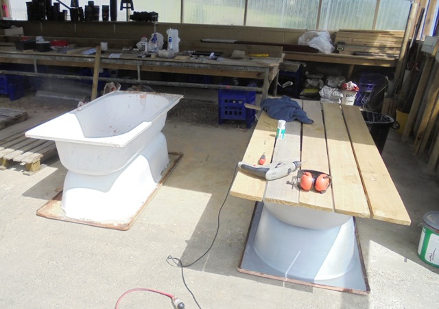 Because the bath tub table has been so useful and popular with visitors, we decided to have this team make another one.