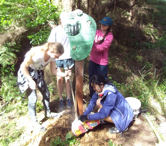 […] October, students who were doing the Duke of Edinburgh’s Hillary Award gold residential at CUE Haven installed six of the signs and last week students from the Titirangi Rudolf Steiner […]