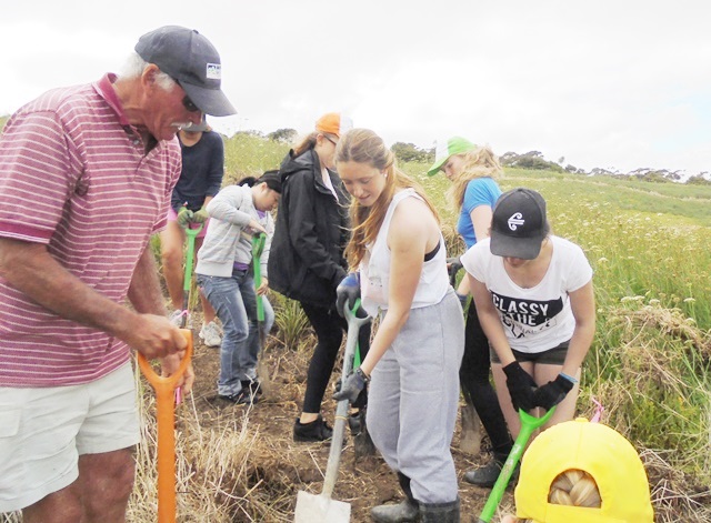 The biggest challenge was chopping through and clearing the dead kikuyu grass but the team coped well and worked away and kept smiling.