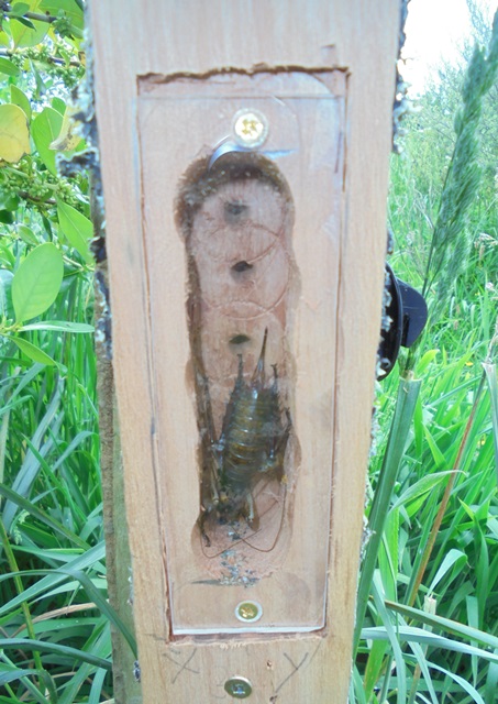 During the walk, Thomas explained the restoration program and our pest and weed control efforts. The students also enjoyed visits by some native birds and also saw a big tree weta in one of the weta boxes in the bush.
