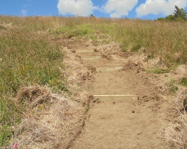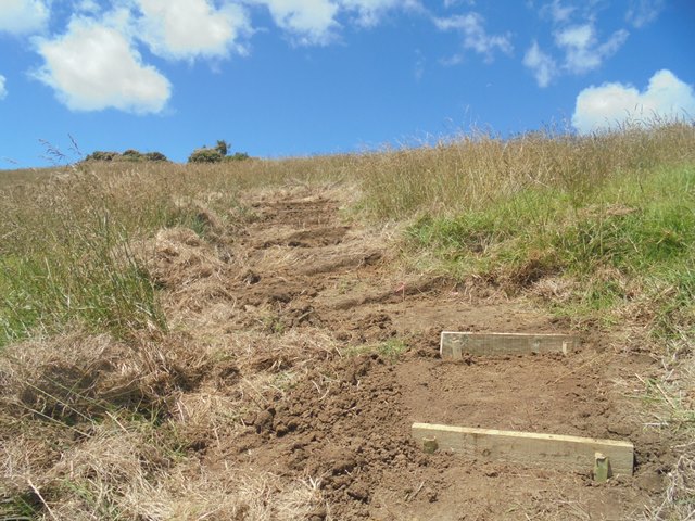 Our summer project is to construct a new walking track at the top of the property where we will be planting next winter. Since November, with the assistance of several teams of volunteers, we have managed to get over a third of the track cleared and benched.