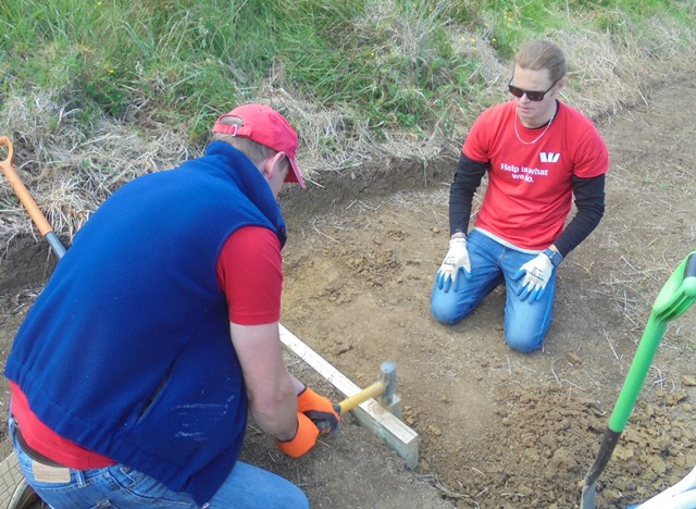 In November 2014, the Department of Conservation had arranged for a team from Westpac, one of New Zealand’s largest banks, to come out to CUE Haven to assist with the construction of a track during Conservation Week. A couple of months ago we contacted the Westpac team and requested them to help out again with the new track construction.