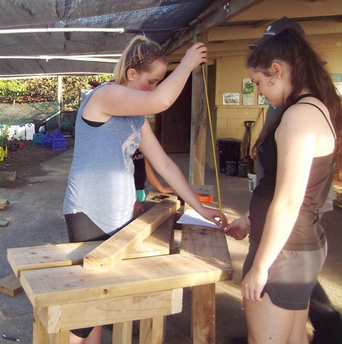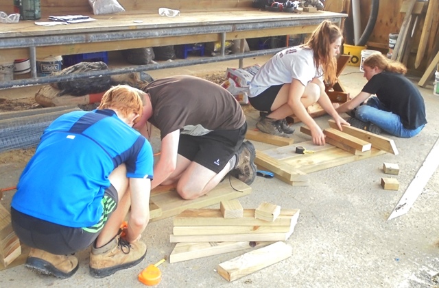 They drew up their design and measured and cut the timber. Andy and Thomas trained and supervised the team members so they could use power tools to help with the cutting.