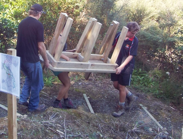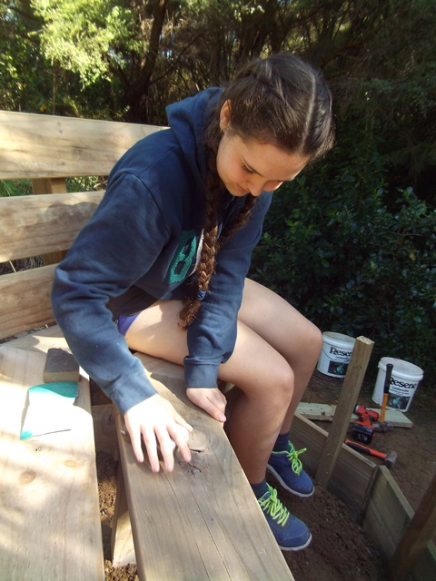 Tasks for the week included building some single benches for the area in front of the cottage, a bench for the walking track as well as walking track maintenance. During the week people moved around so that everyone had a chance to work on different projects.