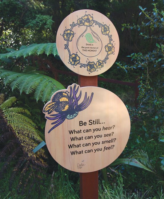 There is a point where two walking tracks join near a small waterfall. It is a lovely place and we have installed an inspirational sign there that encourages visitors to stop and enjoy the moment. Ever since we’ve wanted to put a bench there to encourage people to relax and reflect.