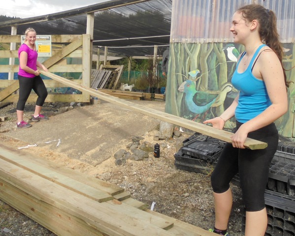 The timber we would be using for the benches and track work had been delivered and the first job was to carry it into the nursery where we would be doing a lot of the work.
